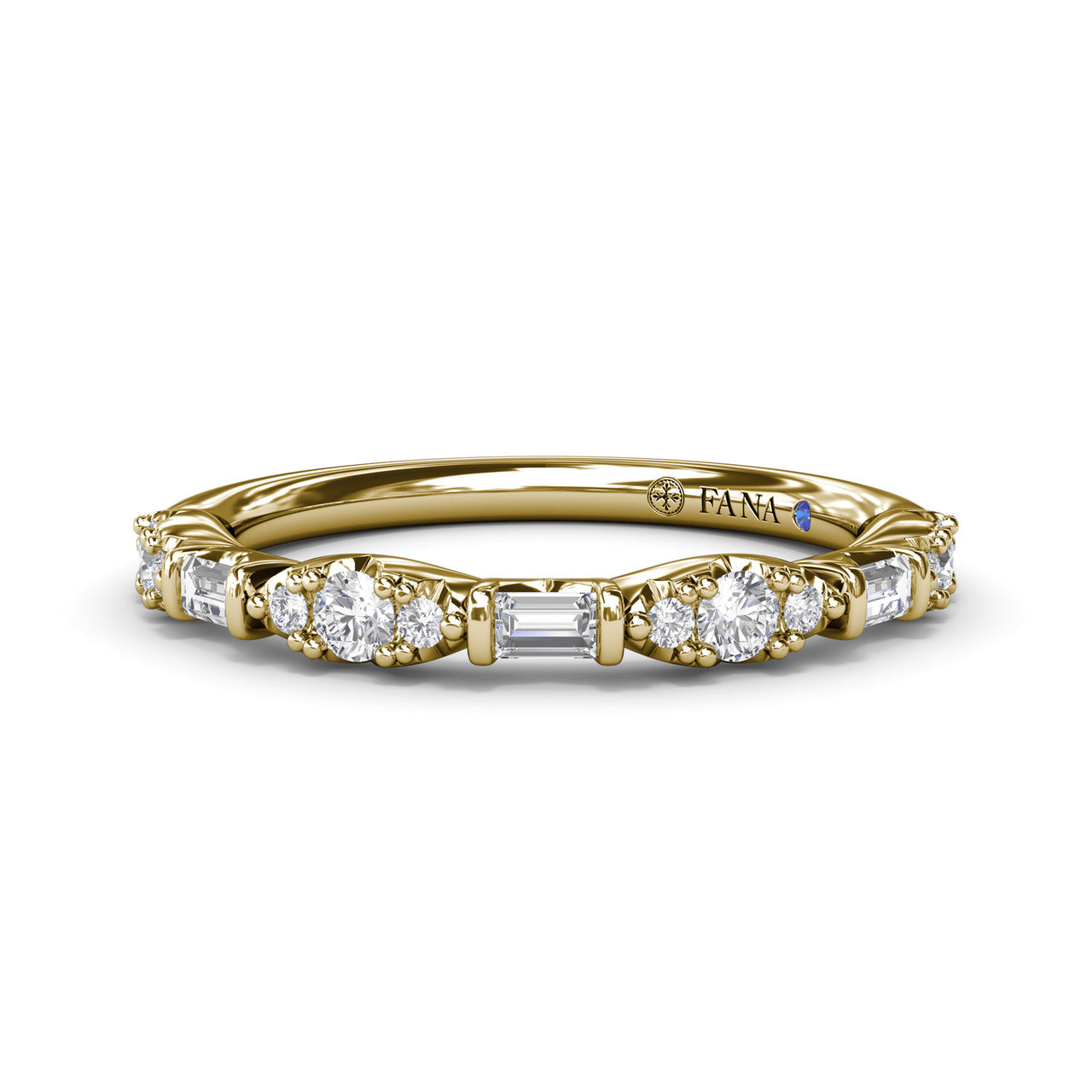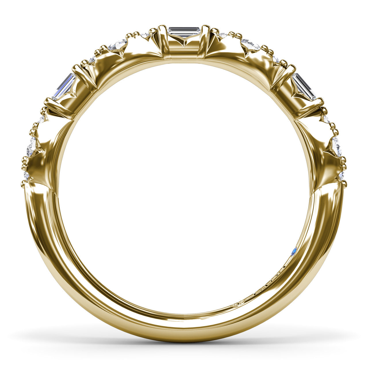 Fana 14k Yellow Gold Round Clusters and Emerald Cut Diamond Wedding Ring