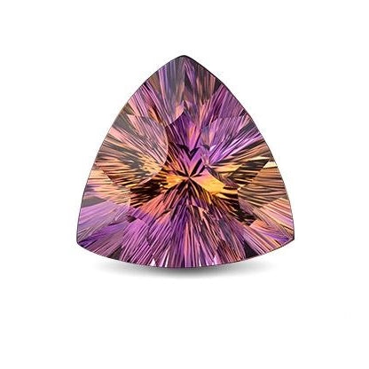 Ametrine, one of the rarest types of transparent quartz, combines two colors: amethyst’s purple and citrine’s orange-to-yellow.