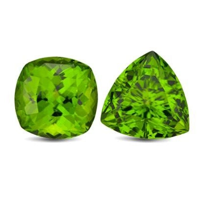 Yellow-green gem variety of the mineral olivine. Found as nodules in volcanic rock, occasionally as crystals lining veins in mountains of Myanmar and Pakistan, and occasionally inside meteorites.
