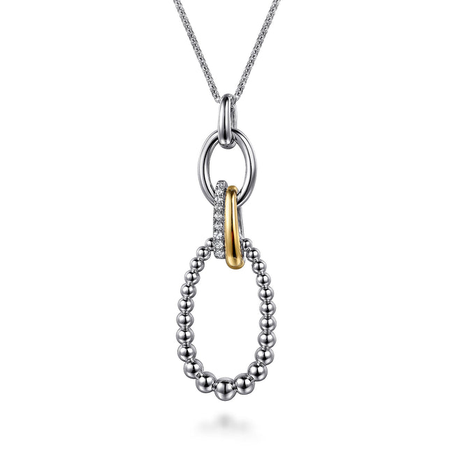 You're reviewing: 925 Sterling Silver and 14K Yellow Gold Bujukan White Sapphire Link Pendant Necklace