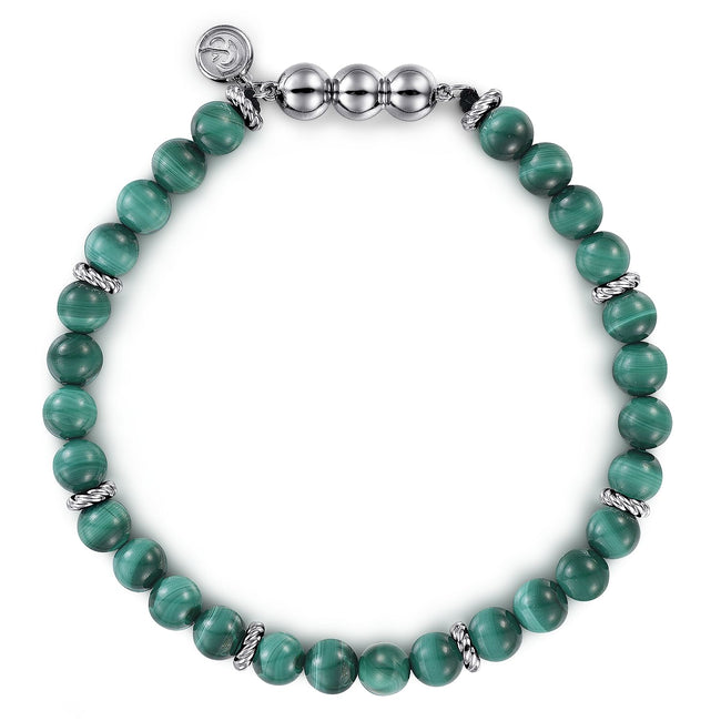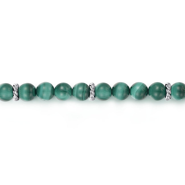 925 Sterling Silver and 6mm Malachite Beaded Bracelet
