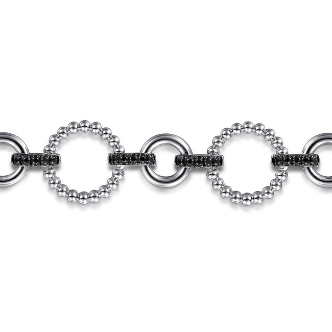 925 Sterling Silver Black Spinel Bujukan Link Tennis Bracelet