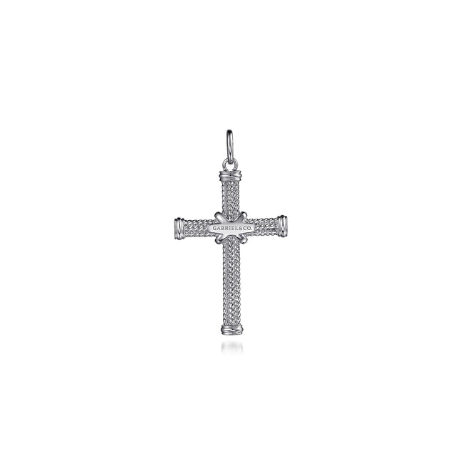 925 Sterling Silver Twisted Rope Cross Pendant with X Center