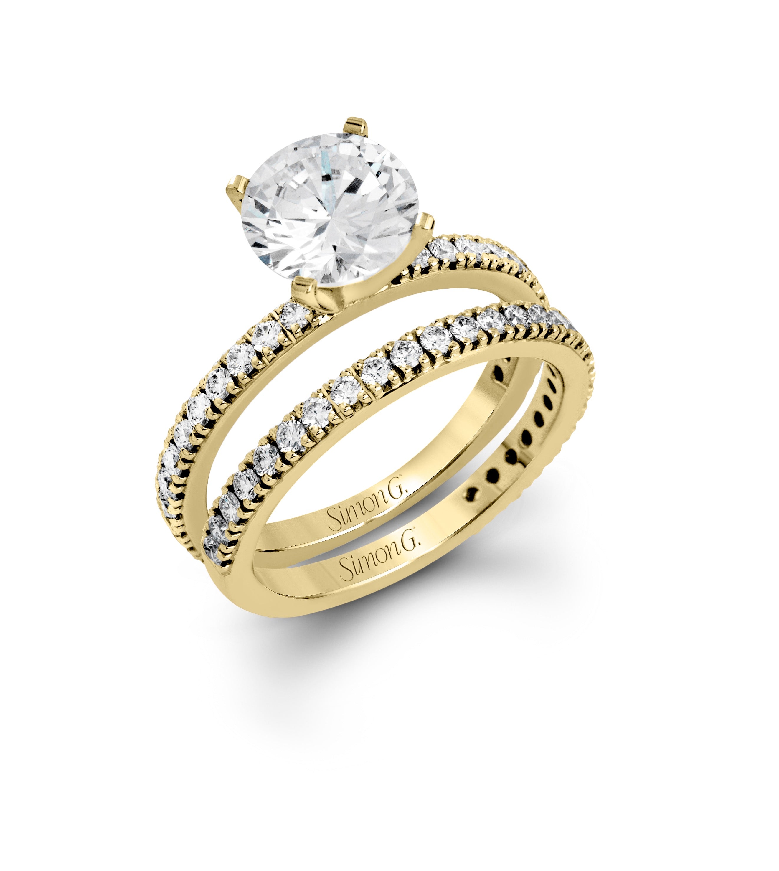 You're reviewing: Round-cut Engagement Ring & Matching Wedding Band in 18k Gold with Diamonds