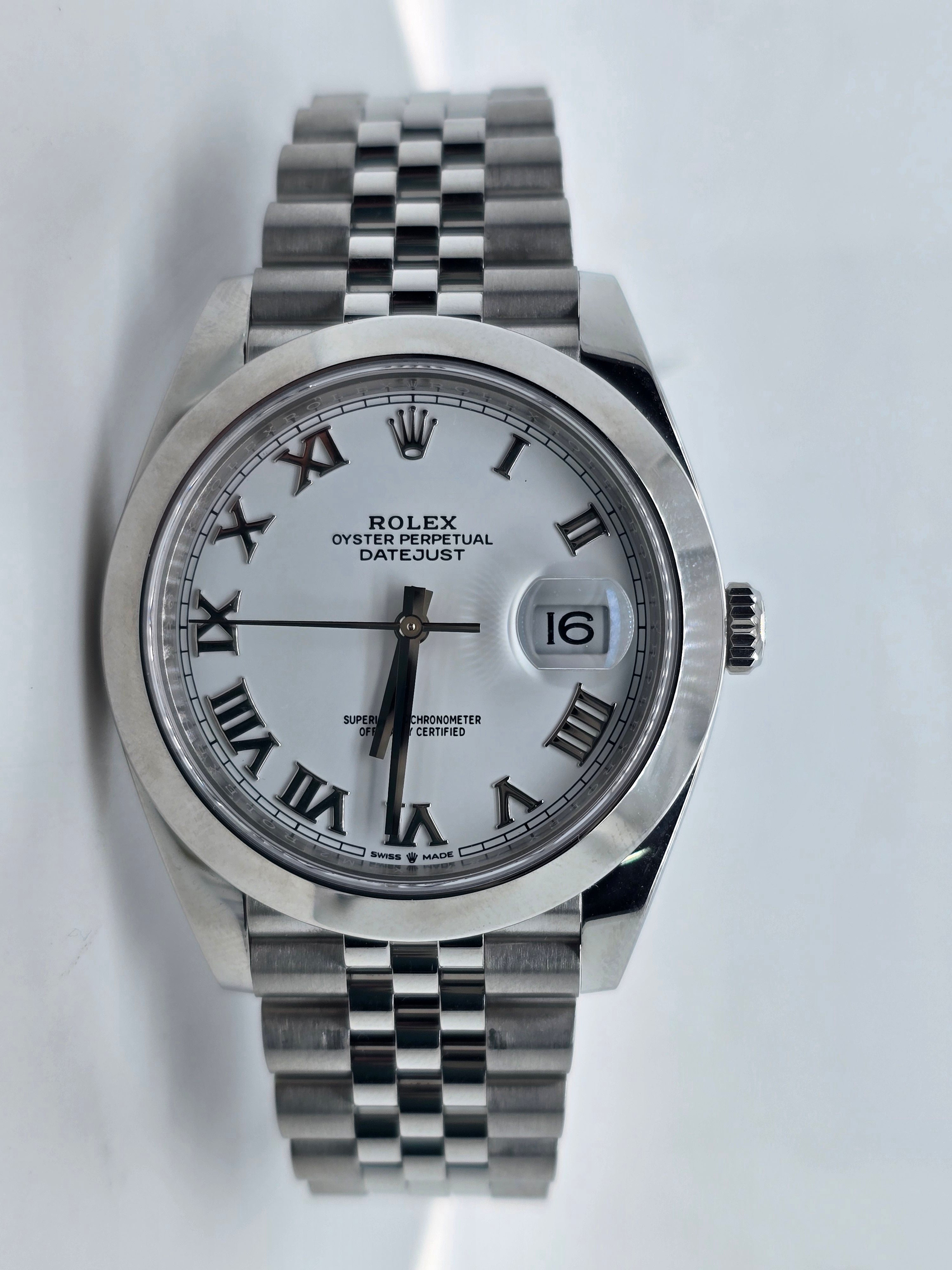 41MM DATEJUST, SS, JUBILEE BAND, FLUTED BEZEL, WHITE STICK DIAL, MODEL # 126300, SERIAL #7879X2M2, C